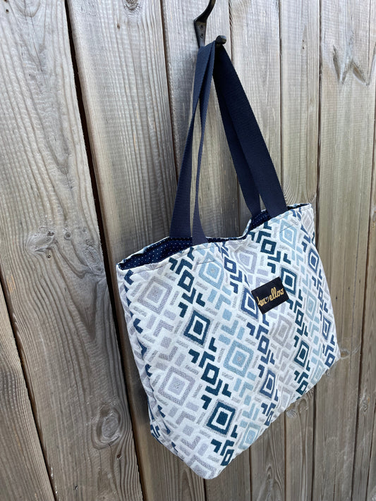 Tas 'winter" wit-donkerblauw met rits MAIL OM TE BESTELLEN!